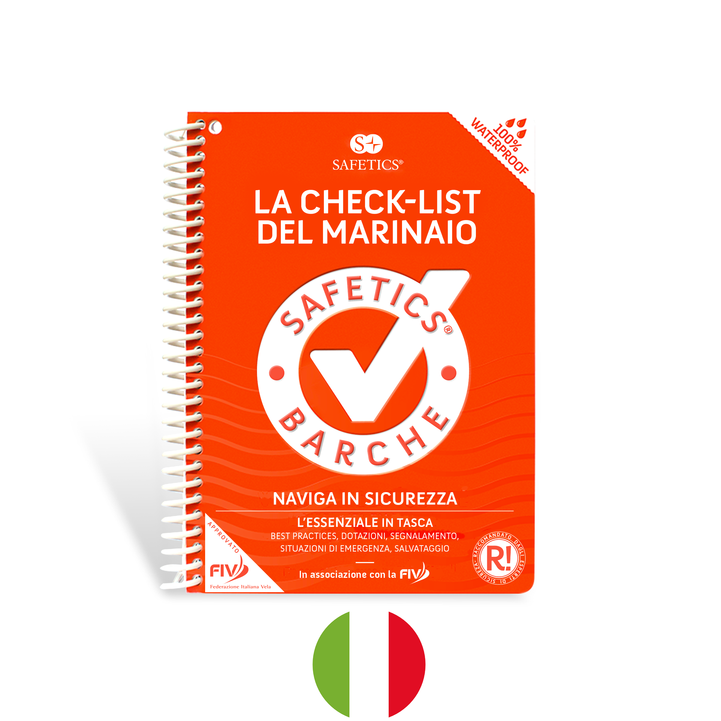 Safetics la Check-list del Marinaio is the first navigation guide written in Italian to be in the form of a checklist, inspired by the checklists of aviation. Sponsored by Armel Le Cléac’h, and translated by Umberta Verna and Philippe Esnault from Safety World, it contains the essential rules of navigation validated by nautical experts, for all boats: sailboats and motor boats. Its universal and practical contents were written for all skippers and crewmates, and its waterproof format allows an unrivalled durability, discover this without waiting!